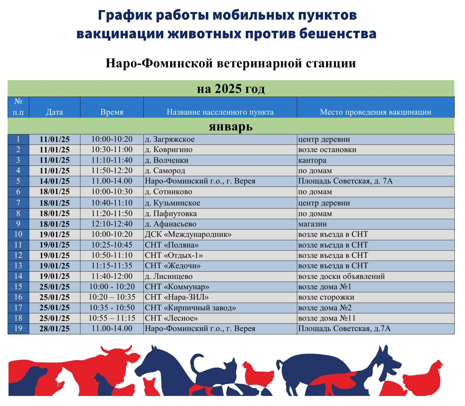 График работы мобильных пунктов вакцинации животных
