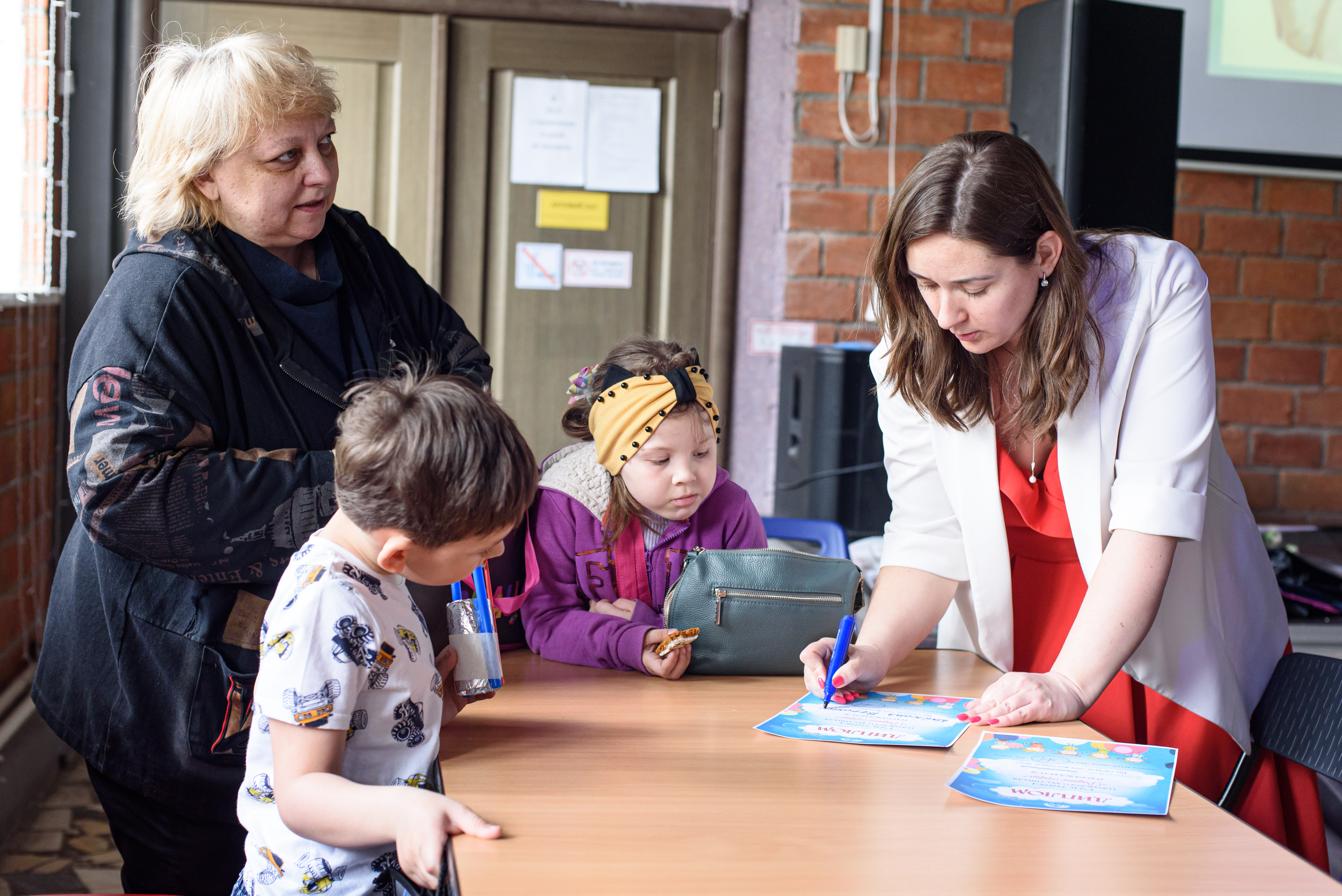 Для детей «МоСТ» подготовил мастер-класс. Руководитель кружка «Занимательная наука» Яна Надольская показала, как сделать из подручных материалов шагающего человечка. Потом была короткая разминка, дети получили дипломы за участие и подарки: папки для творчества, набор для изготовления песочных картин и угощение – расписной пряник.