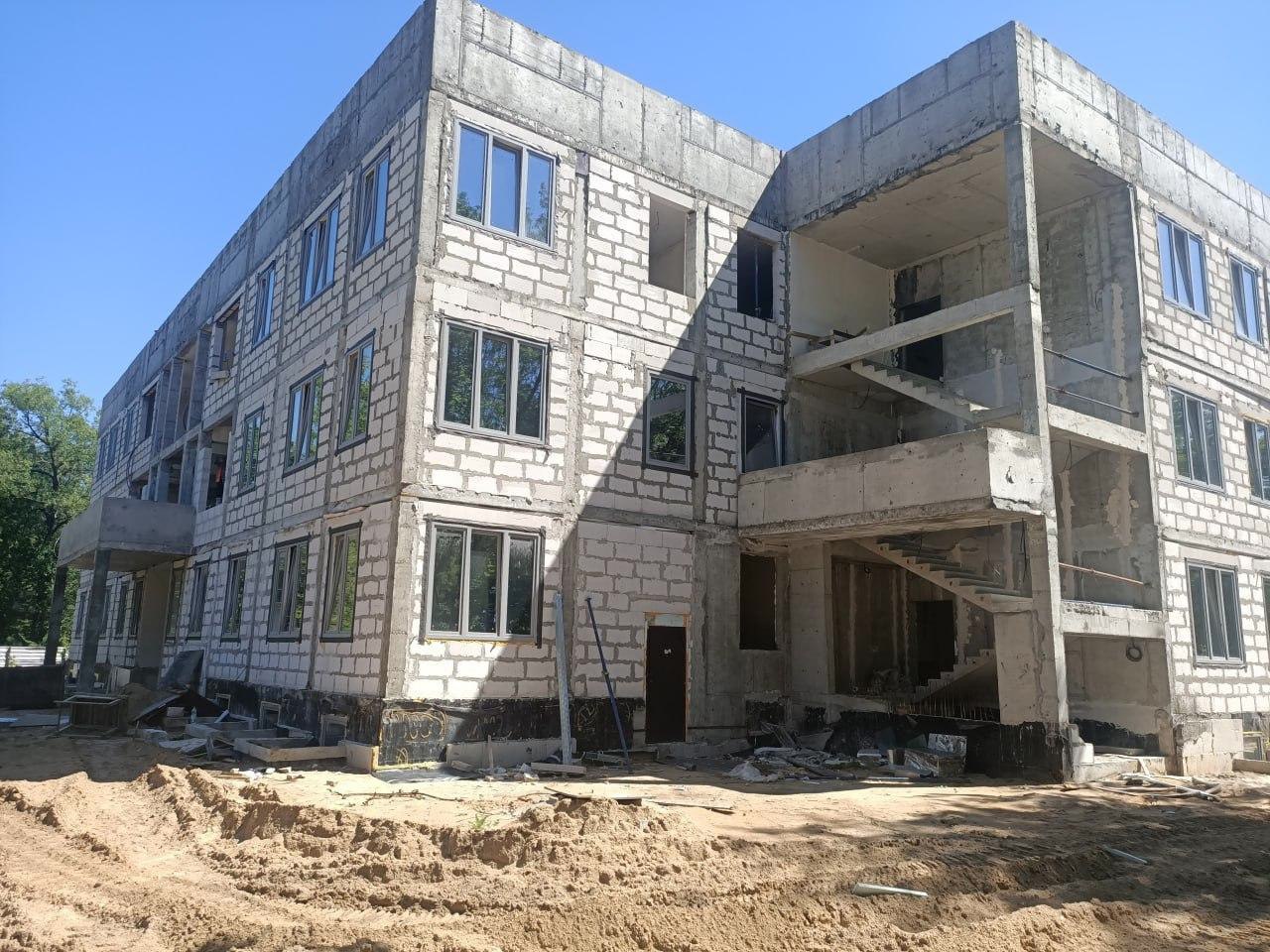 В настоящий момент на площадке задействовано 42 рабочих. Выполняются кладочные работы, устройство кровли, монтаж светопрозрачных конструкций, устройство полов, монтаж внутренних инженерных систем.