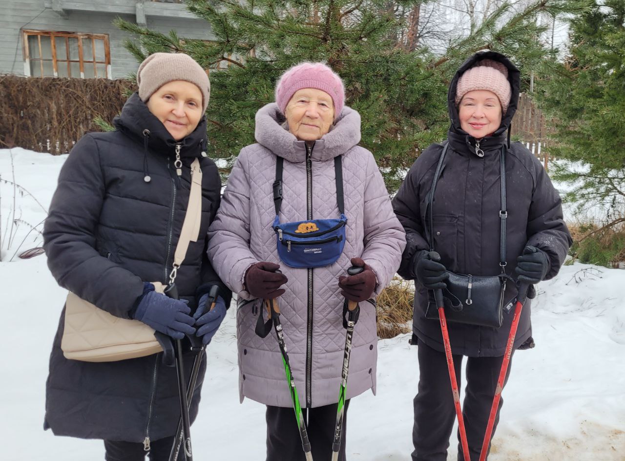 Участники программы «Активное долголетие» Рузского муниципального округа укрепляют свое здоровье с помощью занятий скандинавской ходьбой.