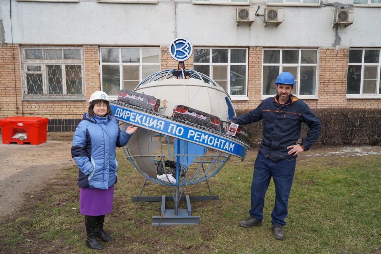 Территорию рядом с цехом ремонта дизелей теперь украшает необычная инсталляция. Это Земной шар диаметром полтора метра, который опоясан экватором с надписью «Дирекция по ремонтам». По этой воображаемой круговой линии вокруг земли проложена железная дорога с тремя коломенскими тепловозами. На вершине конструкции установлен логотип Коломенского завода.