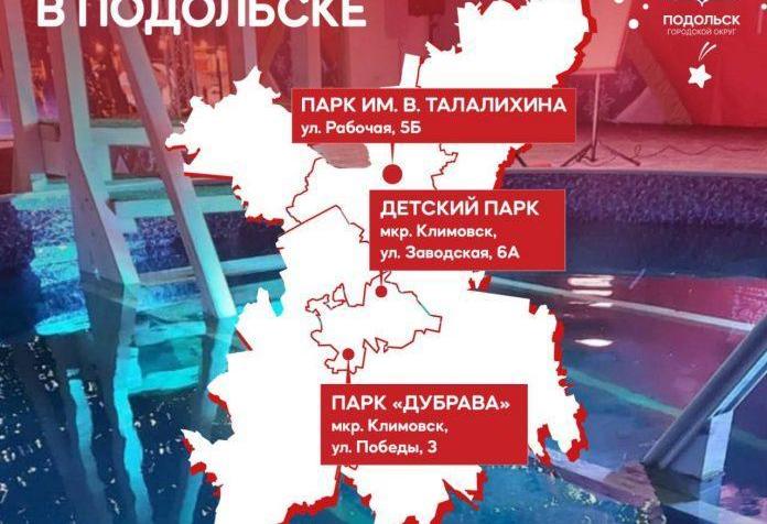 Купели будут размещены в Парке культуры и отдыха имени Виктора Талалихина (ул. Рабочая, 5б, танцевальная веранда); в парке «Дубрава» (микрорайон Климовск, ул. Победы, 3); в Детском парке культуры и отдыха (микрорайон Климовск, ул. Заводская, 6а).