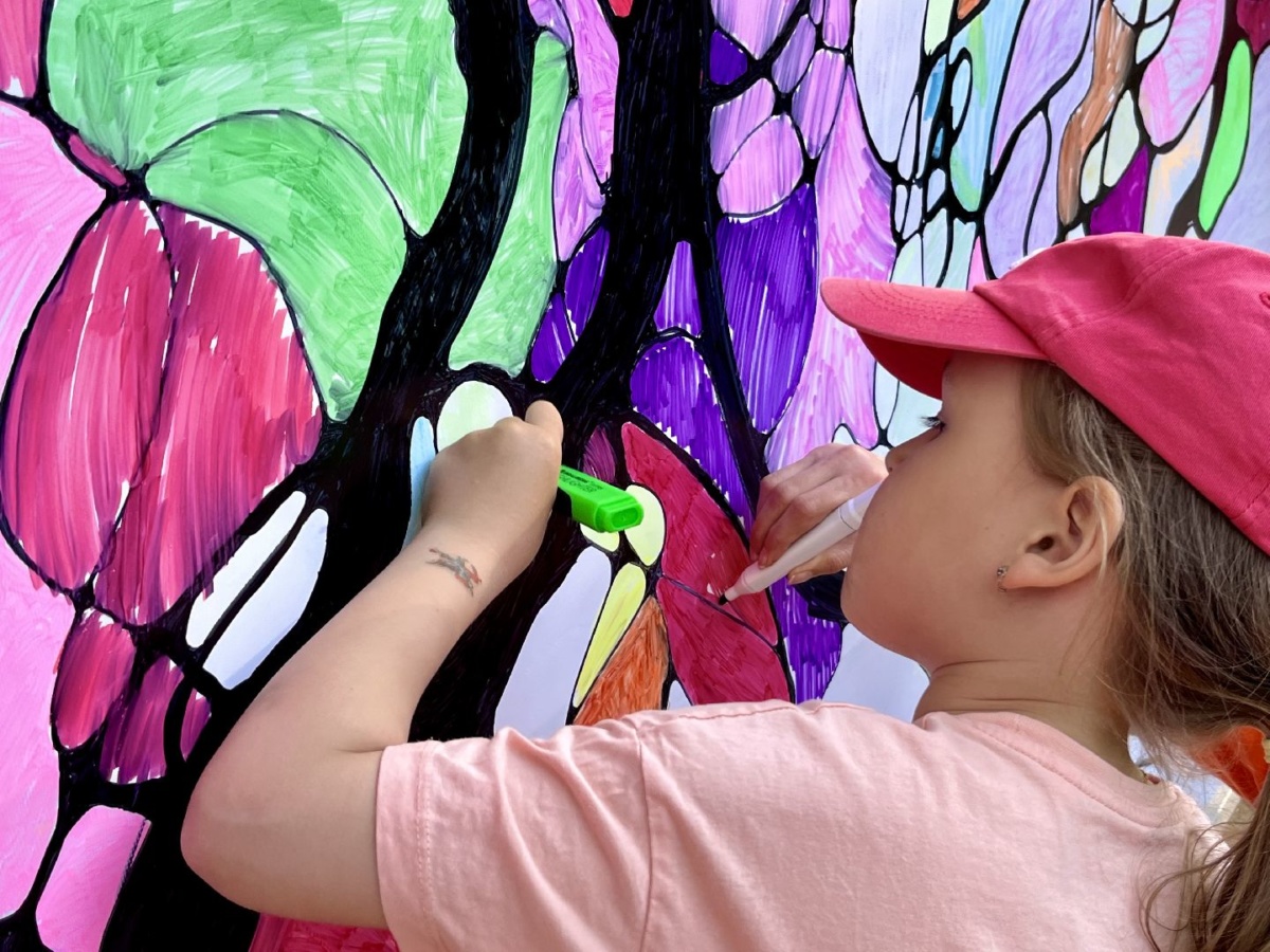 В этот раз взрослые и дети не только рисовали индивидуальные картины, но и сообща создали коллективный рисунок. Он станет фотозоной на площадке летних мастер-классов по нейрографике.