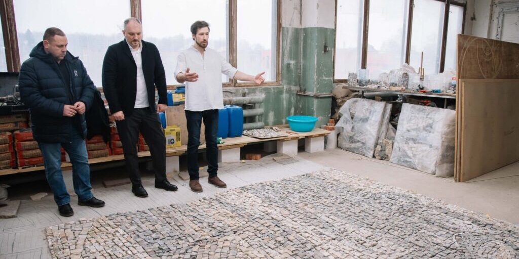 Восстановление мемориала в Зендиково идёт активными темпами. Сейчас реставраторы работают над самым кропотливым этапом – сборке мозаичного панно. Реставратор Алексей Шмелев вместе с помощниками отбивает составляющие рисунка – кусочки гранита, мрамора и смальты – а затем собирает заново, воссоздавая сегменты панно при помощи специальной технологии. Работа кропотливая, требующая большого внимания.