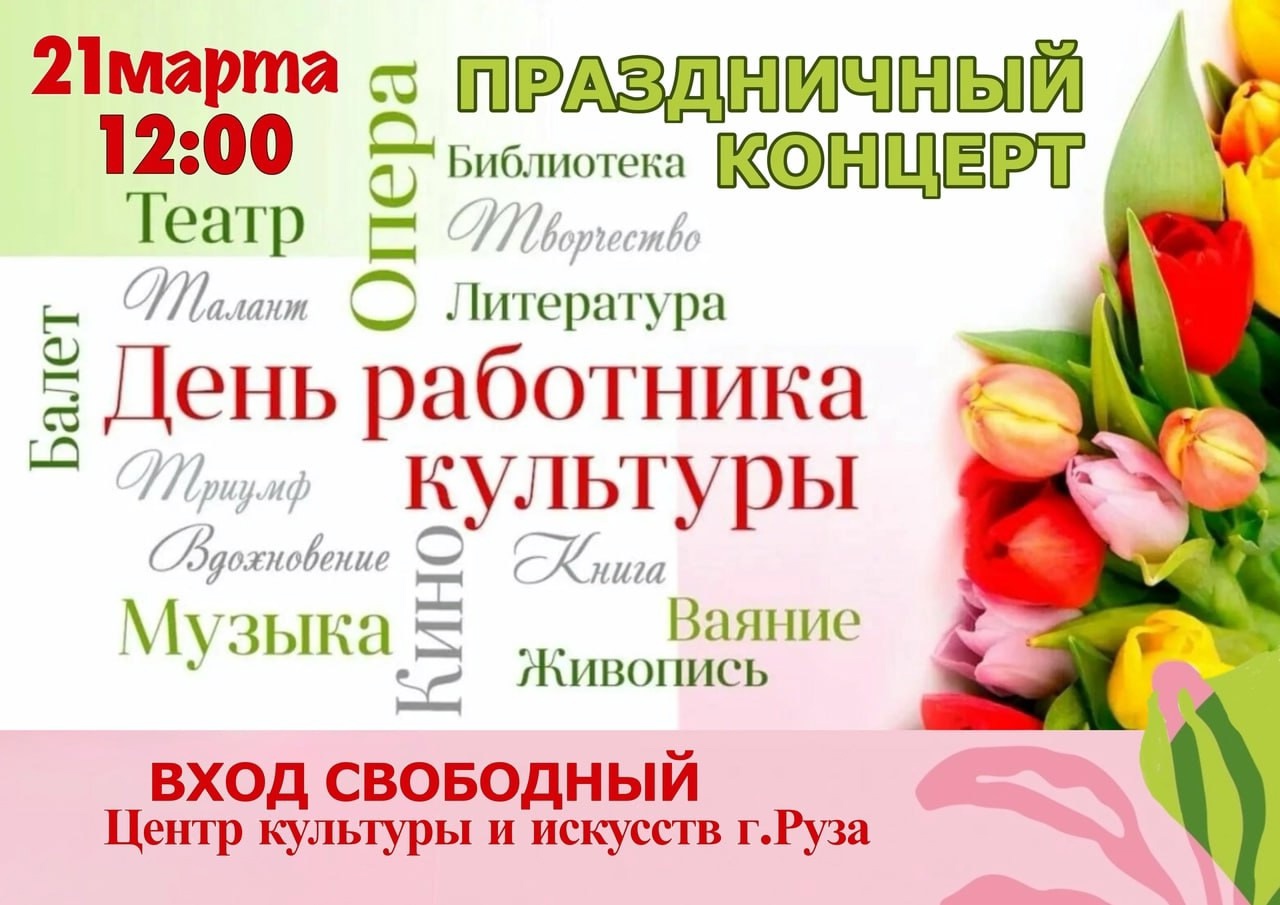 Центр культуры и искусств Рузы приглашает всех хранителей красоты и творцов вдохновения на праздничный концерт, посвящённый Дню работника культуры, 21 марта в 12:00.