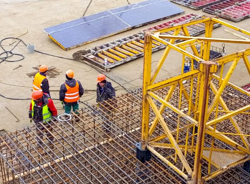 «На объекте 40 рабочих и 4 единицы техники. Строители завершили бетонирование фундаментной плиты и приступили к установке башенного крана. Строительство ведется на улице Мира», – говорится в релизе ведомства.